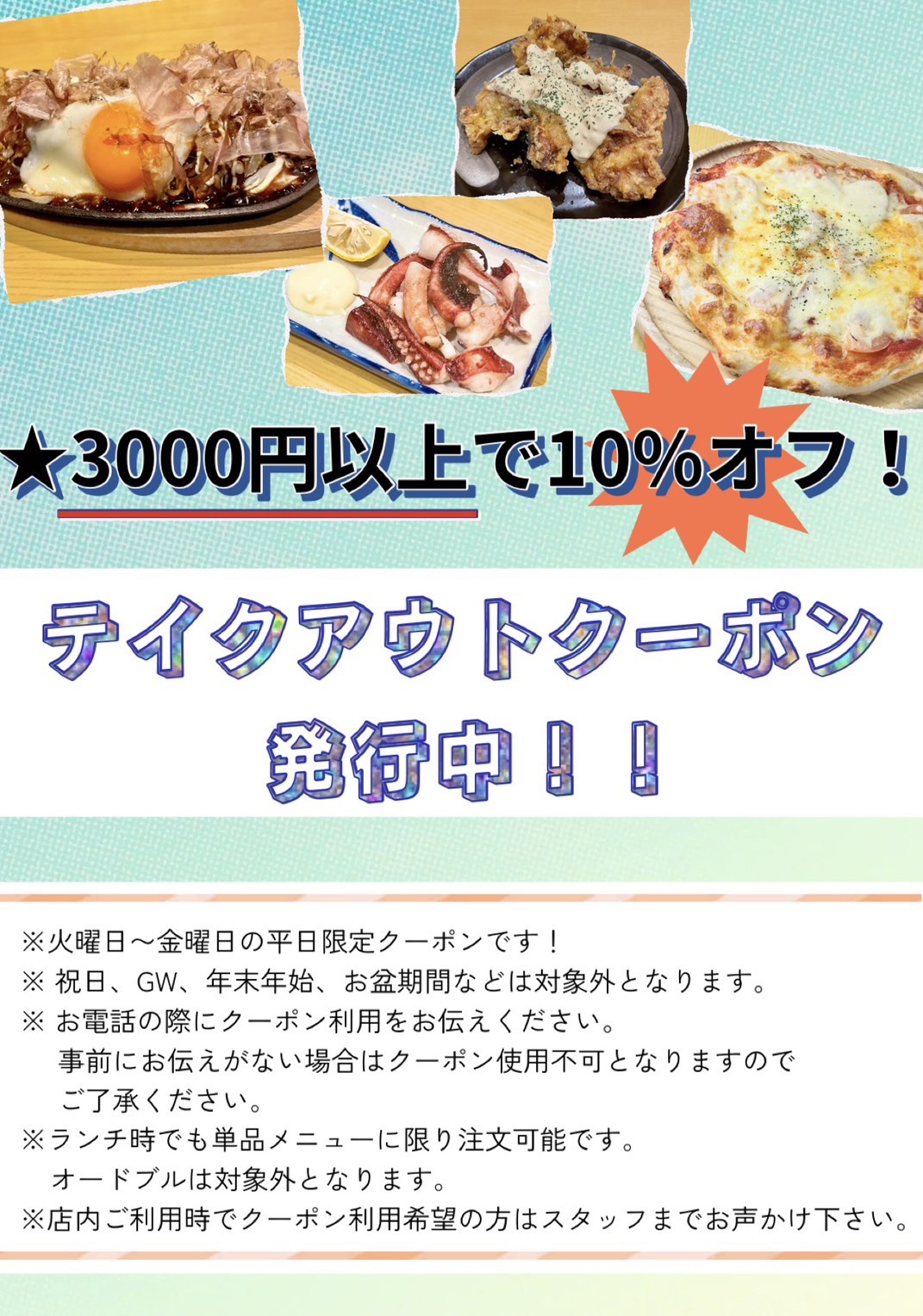 【平日限定】テイクアウトクーポンのご案内